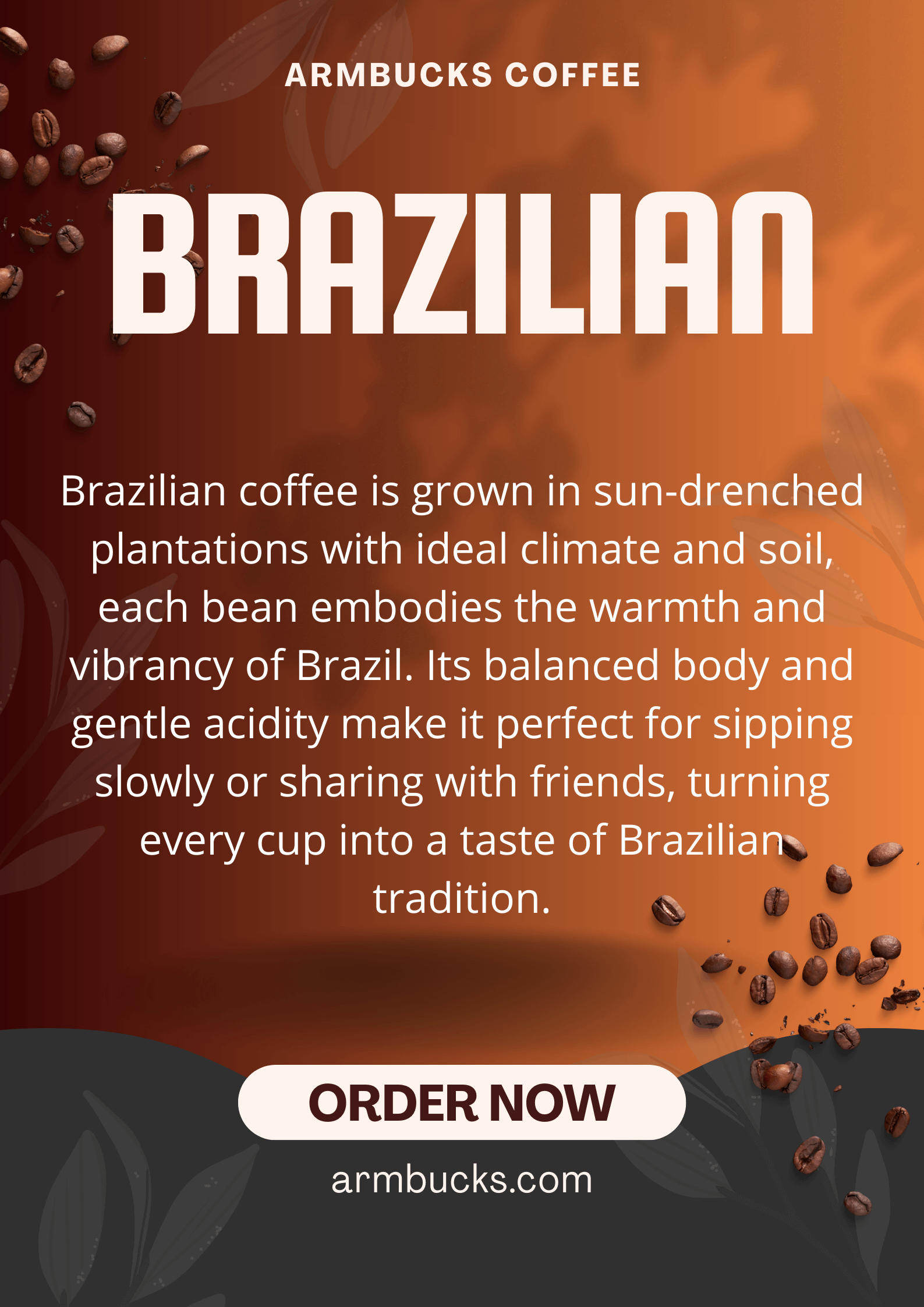 Brazilian coffee is grown in sun-drenched plantations with ideal climate and soil, each bean embodies the warmth and vibrancy of Brazil. Its balanced body and gentle acidity make it perfect for sipping slowly or sharing with friends, turning every cup into a taste of Brazilian tradition.