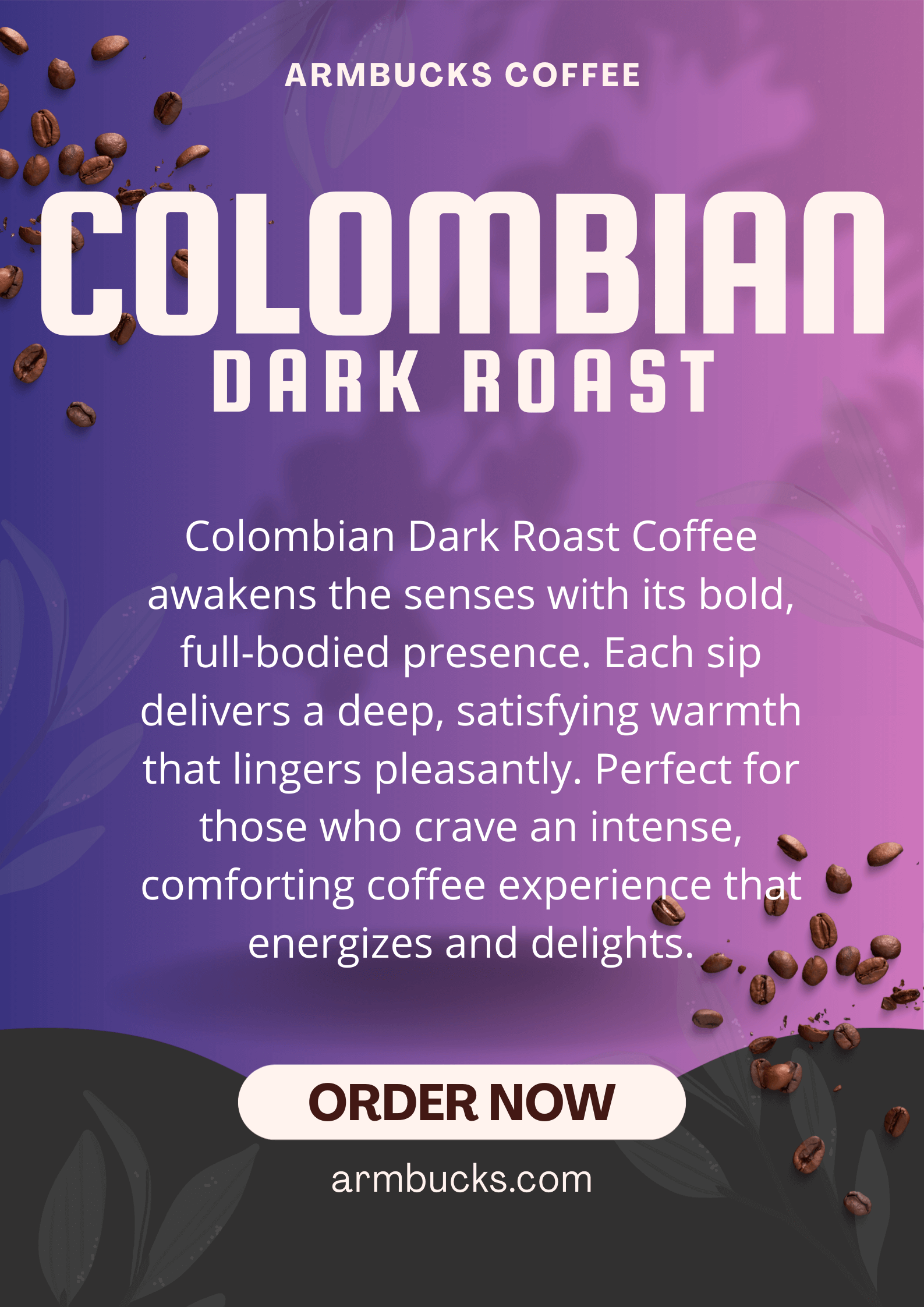 Colombian Dark Roast Coffee awakens the senses with its bold, full-bodied presence. Each sip delivers a deep, satisfying warmth that lingers pleasantly. Perfect for those who crave an intense, comforting coffee experience that energizes and delights.