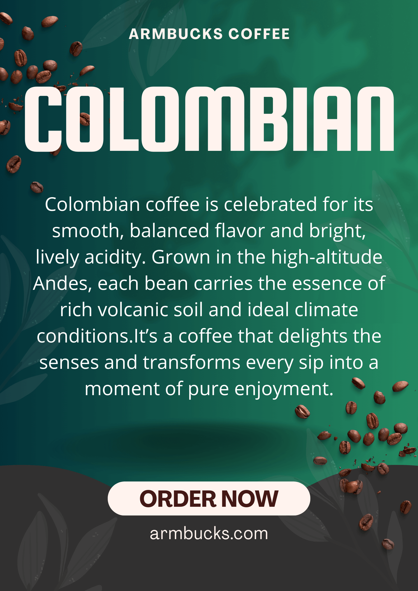 Colombian coffee is celebrated for its smooth, balanced flavor and bright, lively acidity. Grown in the high-altitude Andes, each bean carries the essence of rich volcanic soil and ideal climate conditions.It’s a coffee that delights the senses and transforms every sip into a moment of pure enjoyment.